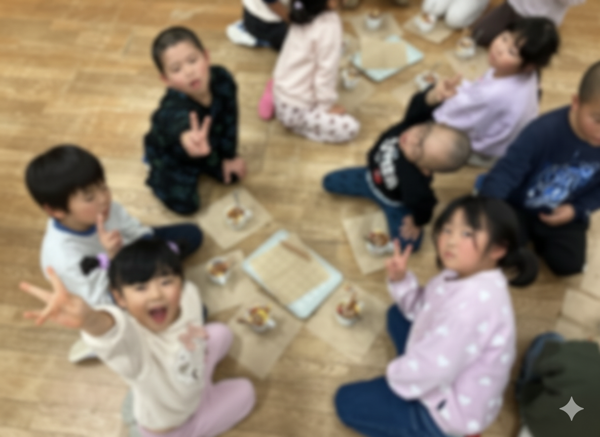 今日のおやつは「手作りパフェ」ベースのパフェに様々なフルーツやトッピングを飾りつけて楽しく食べました。